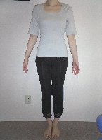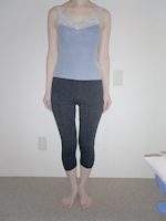 日々の生活でそれらを心がけるようにし、知らず知らずのうちに改善されたことは、2度目の施術後、今まで腰がきつくてはけなかったジーンズが苦もなくはけるようになったこと。ウエストはまだ苦しいままですが、でもそれも以前と比べたら比べ物になりません。浮腫みがとれ手足の冷えが以前ほど酷くなくなったこと。浮腫みが取れたことで靴のサイズがワンサイズ小さくなったこと。お通じがとてもよくなったこと。主人に立ち姿が変わったといわれた等々、沢山あります。まだまだ正しい姿勢は完全にはマスターできておらず、肩の位置も本来あるべき位置ではありませんが、楽な姿勢がイコール正しい姿勢である自分になれる日を楽しみに、頑張らないお気楽ストレッチを心がけて参ります。大変お世話になりました。ありがとうございました。これからもよろしくお願いいたします。