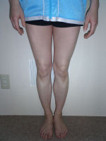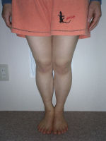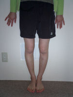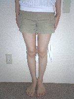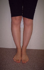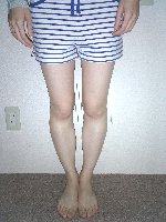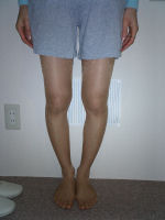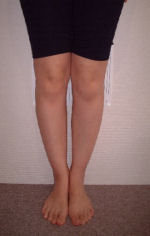 物心ついたころからO脚に気付き、長い間コンプレックスを感じていました。でも何をしても私のこの強烈なO脚は治らないと諦めていました。そんな時インターネットで、きむら整体院HP体験談を読み、もしかしたら治るのかもしれない・・・一回やってみよう!と半信半疑でモニターに参加しました。1回目の施術後、本当にびっくりしました!!今までどれだ力を入れてもくっつかなかった膝がひっついたのです!最後の施術後では、楽に膝がくっつくようになりました。今まで諦めていて治そうと思ったことがなかっただけに本当に嬉しかったです。先生に、『日々のストレッチや日常生活で姿勢を正す事が何より重要で、脚の内側に筋肉がつけば力を加えなくても自然に脚がまっすぐになるよ。』とご指導頂き、大変勉強になりました。毎日の自分のちょっとした努力(歩き方・立ち方・座り方・寝方・運動など)を忘れないようにこれからも頑張っていきたいと思います。本当にありがとうございました。H16/06/18