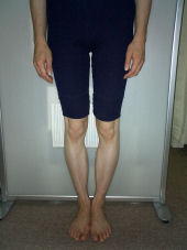整体に通い始めて1ヶ月ちょっと経ちましたが、これほど効果が表われるとは思っていませんでした。そのためには整体に通うのはもちろんの事、日々の生活の中での立つ、歩く、座る、寝る、それぞれの正しい姿勢や硬くなった筋肉を伸ばす事もとても大切だと教えて頂きました。今はまだ先生に言われた注意点に気を配りながら生活していますが、習慣づけていき、矯正後の状態を維持できる様に頑張りたいと思います。やっぱり、全然くっつかなかった膝が、くっつくようになるのは本当に嬉しいものです。本当に有難うございました。