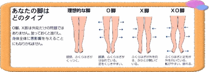 O脚は中学生くらいから気になっていましたが、スカートをはいてもジーパンをはいても似合わず、歳をとるごとにコンプレックスが大きくなってきていました。長年の生活習慣で骨が曲がってしまい、なかなか治らないのもだと思っていたのですが、HPの体験談を見て整体なら本当に治るかもしれないと夢見て始めました。矯正自体は筋肉弛緩から始まり、エアーシートも毎回寝てしまうほど気持ちよく、行くのが楽しみでした。私の場合少し強めのXO脚だったようで、治りが人より遅かったので、歩き方、座り方、姿勢、など毎日の生活習慣の見なおしプラス内側の筋肉増強に努めました。最近は電車でもまっすぐ立てるようになり、大分が閉まるようになり、姿勢がよくなったと周りからも言われるようになりました。完全に治るまでまだまだ努力が必要ですが、継続して頑張っていきたいと思いますH16/06/14